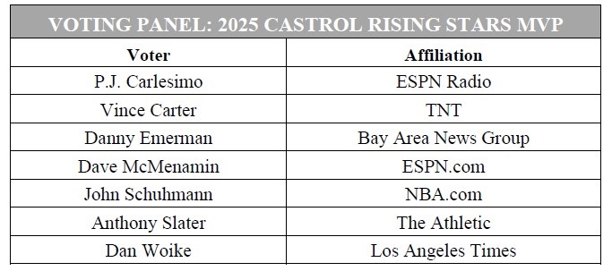 - 實至名歸!新秀賽MVP卡斯爾獲得了媒體評審團全部7張選票