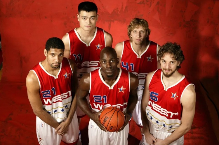 當然,只看全明星,那些年的正賽陣容中也始終保持了一定數(shù)量的國際球員,姚明、諾維茨基、納什、帕克、加索爾,然后吉諾比利、奧庫等偶爾拿張體驗卡。但可以明顯看出西部隊基本總是包圓兒,東西部嚴重不平衡。