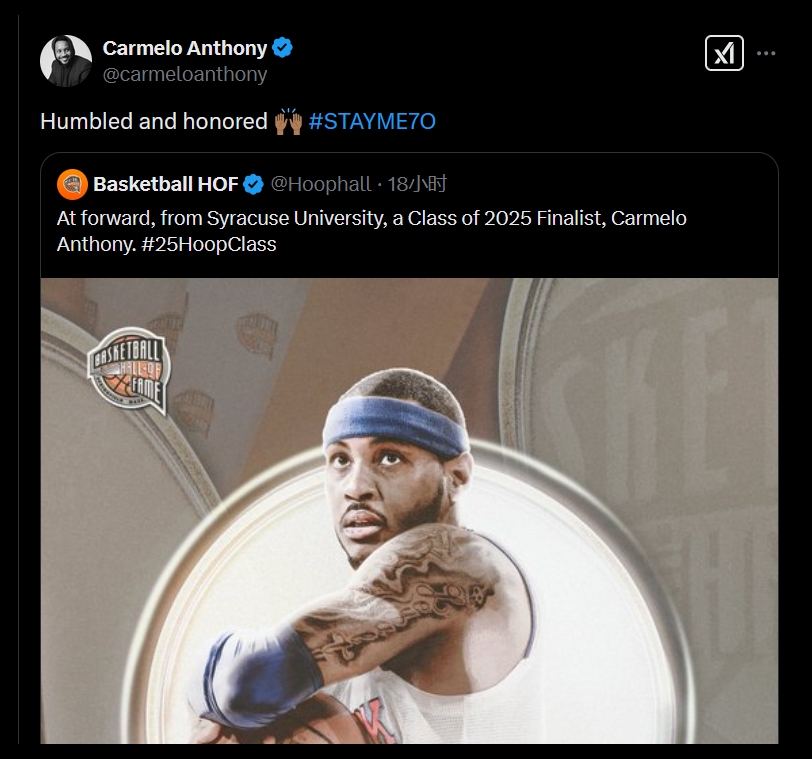 02月16日訊 安東尼更新個(gè)人社交媒體,轉(zhuǎn)發(fā)了自己入選2025年名人堂最終候選名單的新聞。“謙卑且榮幸!????????”安東尼寫(xiě)道。 本文標(biāo)簽: 籃球 NBA 安東尼 尼克斯