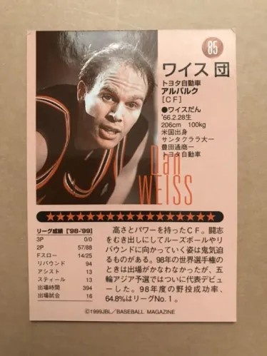 1999年,福岡舉辦的亞洲杯男子籃球預(yù)選賽中,日本隊(duì)加入了一名名叫“ワイス 団(英文名Daniel A Weiss)”的中鋒球員。這也是日本歷史上第一次啟用“歸化球員”。