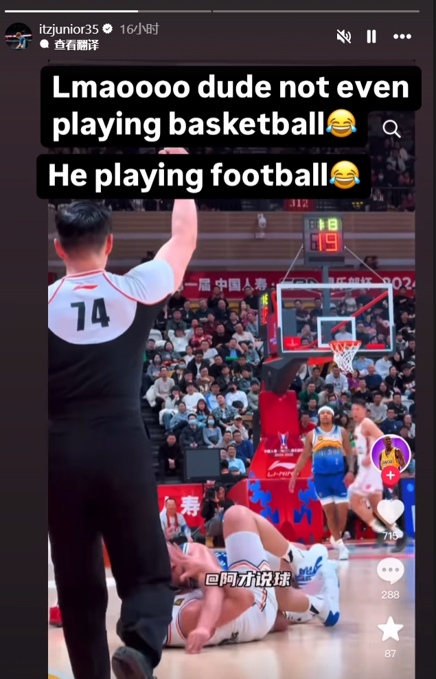 洛夫頓更新INS吐槽了CBA的犯規(guī),隨后再次點(diǎn)名艾孜麥提,寫道:“笑死我了,這哥們就不是來(lái)打籃球的????,來(lái)打橄欖球的吧。????”