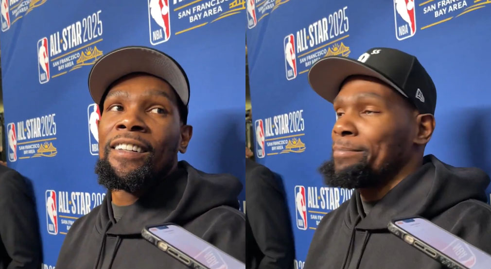 賽后,有記者采訪杜蘭特:“你厭倦了庫里剛過半場就扔三分的行為嗎?”
