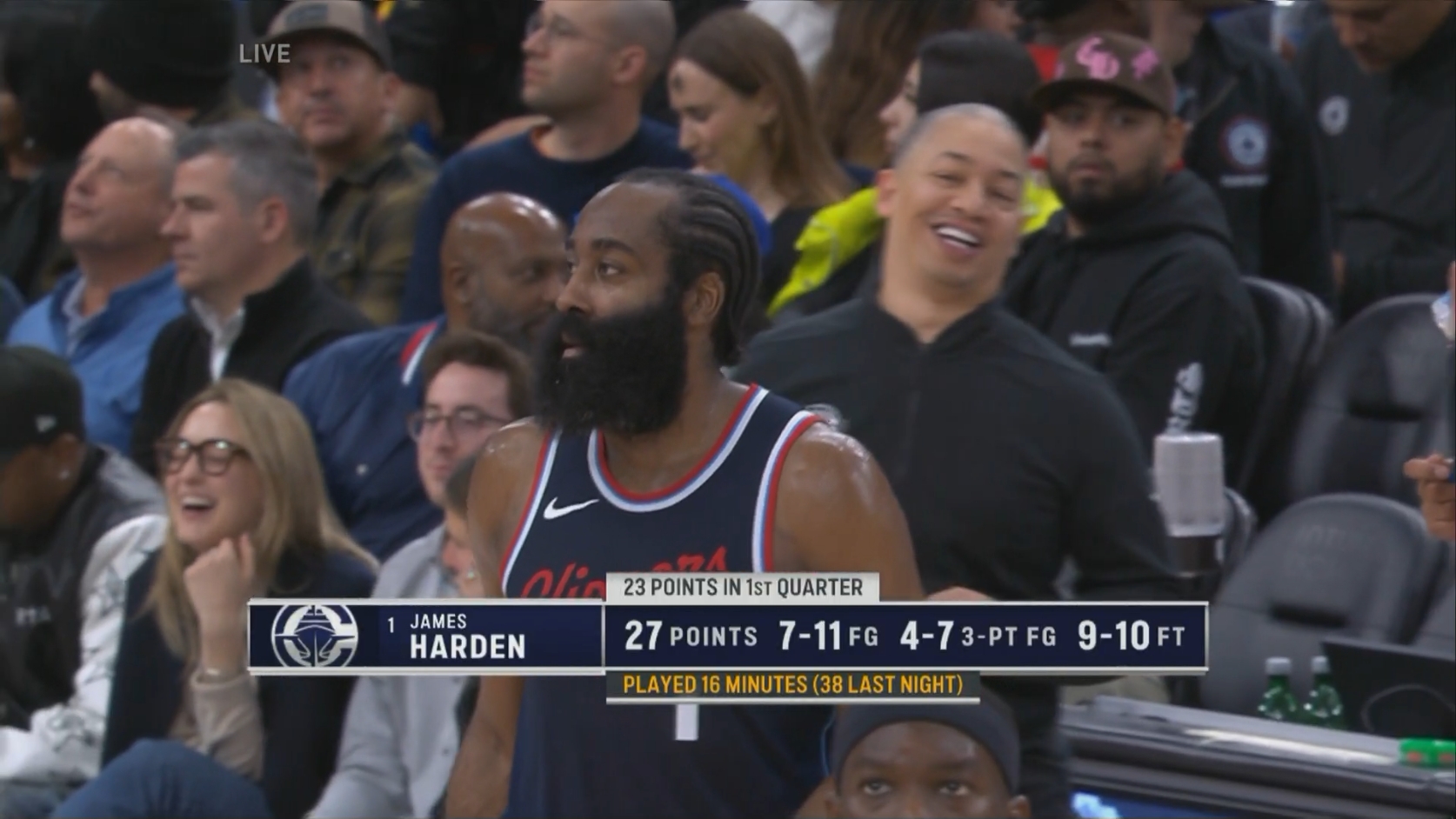 賽后,快船主帥泰倫-盧接受了記者采訪。談到哈登的表現(xiàn),他說(shuō)道:“看到35歲的他在背靠背的第二戰(zhàn)拿到50分,這已經(jīng)說(shuō)明了很多關(guān)于他的偉大。他每晚都去競(jìng)爭(zhēng),背靠背出戰(zhàn)38分鐘,但我們需要他的每一分。”