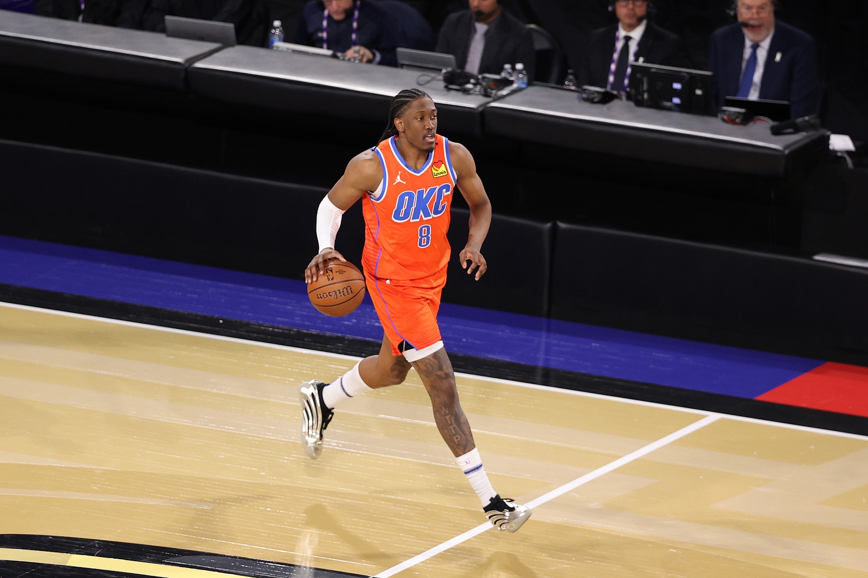 如果杰倫-威廉姆斯能入選,他將是另一位生涯首次入選全明星的球員,而他才剛剛進(jìn)入職業(yè)生涯的第三個(gè)賽季。雷霆擁有西部第一的戰(zhàn)績(jī),并且正在沖擊歷史最佳防守表現(xiàn),而杰倫-威廉姆斯的位置靈活性是其中重要原因。當(dāng)雷霆所有大個(gè)子球員都受傷時(shí),他可以擔(dān)任小球中鋒的角色,幾乎能跟上任何比賽節(jié)奏。盡管杰倫-威廉姆斯大學(xué)時(shí)是控球后衛(wèi),但他憑借近乎超自然的護(hù)筐意識(shí)彌補(bǔ)了身材的不足。在他的日常工作中,每當(dāng)亞歷山大不在場(chǎng)上時(shí),杰倫-威廉姆斯就擔(dān)任主要的控球手和得分創(chuàng)造者。我在這里將他選為后場(chǎng)球員,因?yàn)槲鞑壳皥?chǎng)已經(jīng)人滿為患,但無(wú)論哪個(gè)位置,杰倫-威廉姆斯都是很容易做出的選擇。