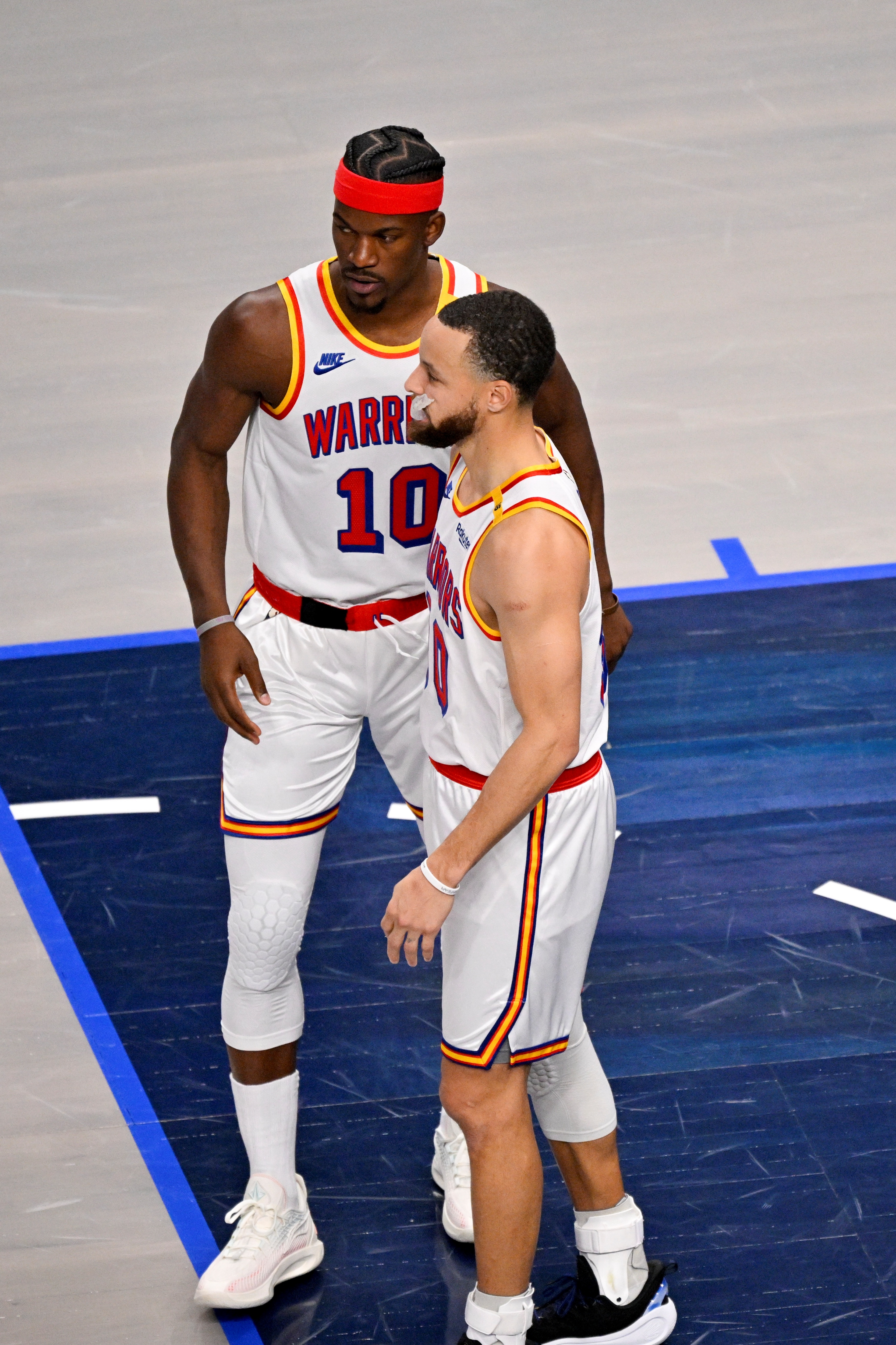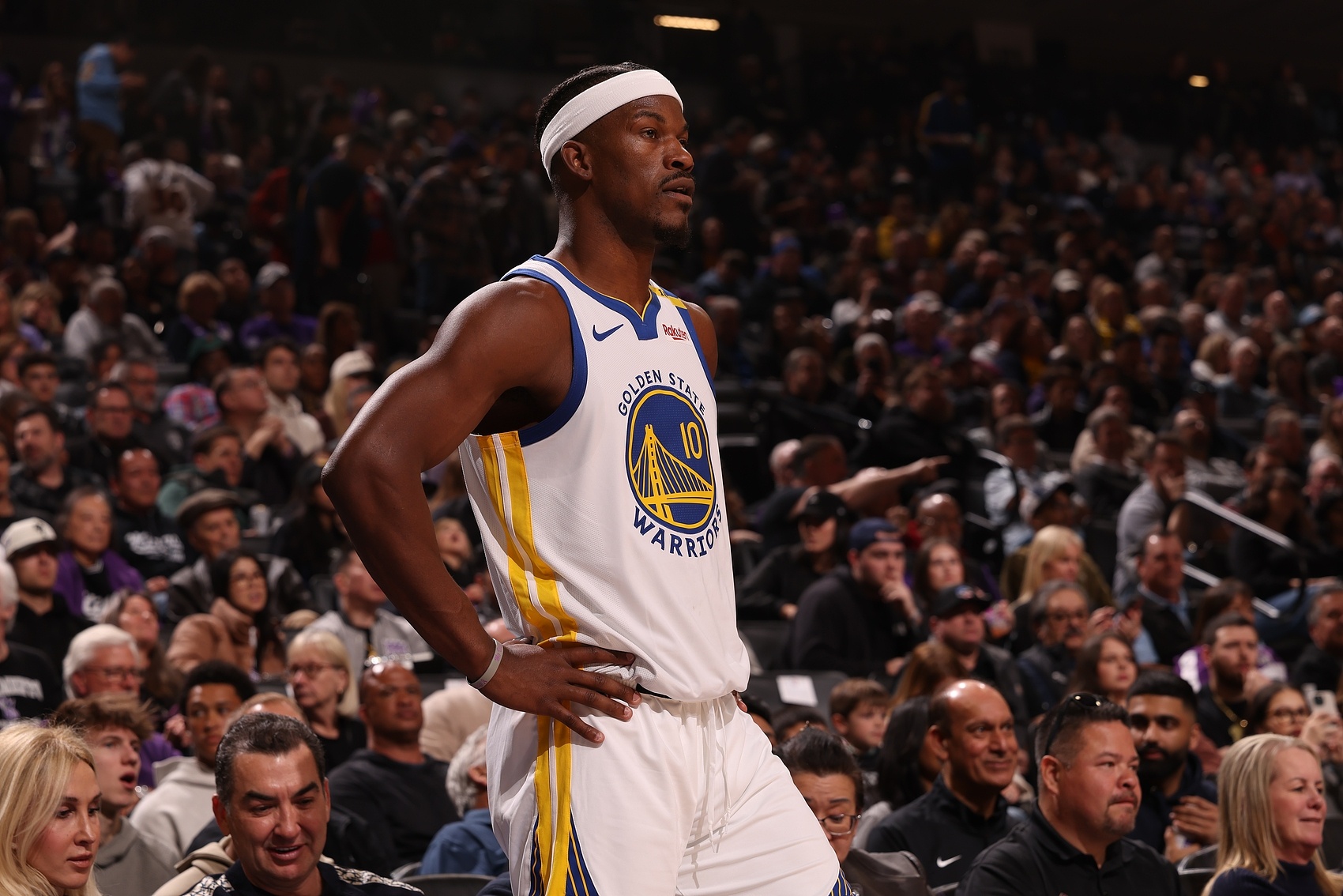 巴特勒并沒有用超級巨星的表現(xiàn)壓倒對手,在勇士隊(duì)他場均可以得到還算不錯的16.3分、5.3個籃板、5.3次助攻和1.1次搶斷,上場時間為30.6分鐘。(我說“還算不錯”是因?yàn)楸举惣局挥?3名其他球員達(dá)到這些數(shù)據(jù),除了德斯蒙德-貝恩,其他人都至少入選過一次全明星。)巴特勒在投籃方面的表現(xiàn)很掙扎——自從交易以來,他20次三分球出手投丟了18個,在油漆區(qū)的投籃命中率僅為53.3%,低于本賽季早些時候在邁阿密熱火隊(duì)時的61.2%——而且在過去的幾場比賽中有所下滑,部分原因是背部痙攣,部分原因是整體進(jìn)攻停滯。