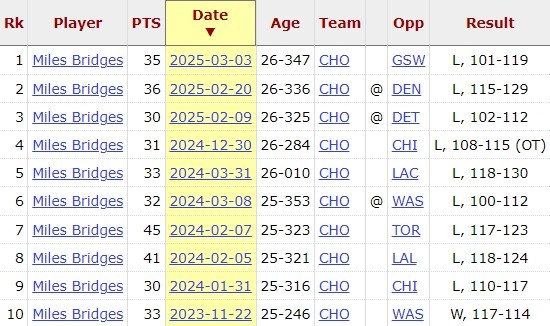3月8日訊 NBA常規(guī)賽,黃蜂117-118惜敗騎士。此役,邁爾斯-布里奇斯打了39分鐘32投15中,三分10中4、罰球13中12空砍全場(chǎng)最高46分外加8籃板2助攻2搶斷,46分生涯新高!值得一提的是,邁爾斯-布里奇斯在過(guò)去10場(chǎng)拿到30+的比賽全輸了。 本文標(biāo)簽: NBA 籃球 黃蜂