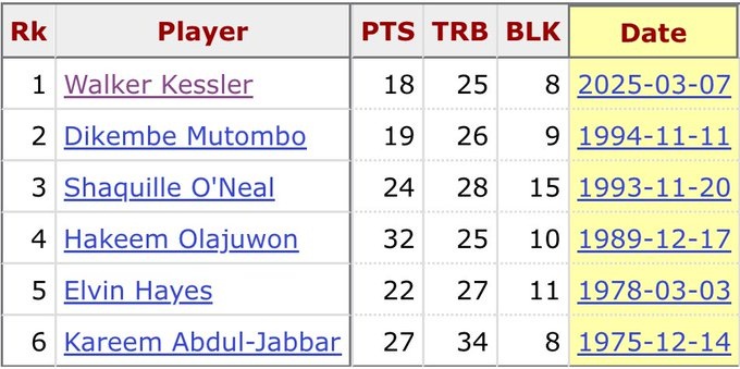 據(jù)統(tǒng)計(jì),凱斯勒成為了NBA歷史上第6位能夠單場(chǎng)打出至少18分25板8蓋帽的球員,比肩穆托姆博、奧尼爾、大夢(mèng)、埃爾文-海耶斯、賈巴爾。