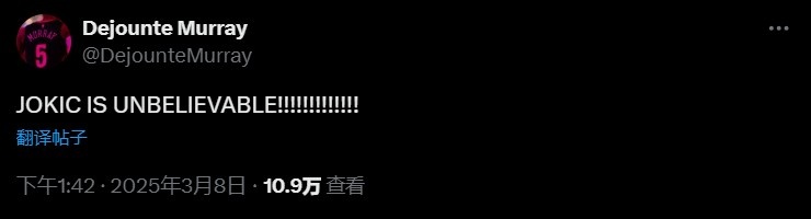 3月8日訊 NBA常規(guī)賽,掘金主場加時(shí)149-141戰(zhàn)勝太陽,約基奇砍下超神三雙,得到31分21籃板22助攻。賽后,鵜鶘后衛(wèi)德章泰-穆雷更推寫道:約基奇實(shí)在太不可思議了! 本文標(biāo)簽: 籃球 NBA 掘金 鵜鶘 約基奇