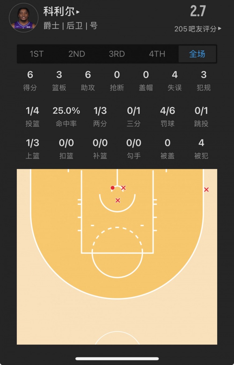 爵士29號秀 以賽亞-科利爾 登場29.9分鐘