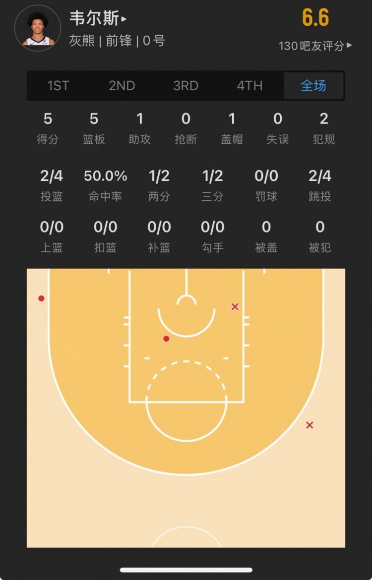 灰熊39號秀 杰倫-韋爾斯 登場21.0分鐘