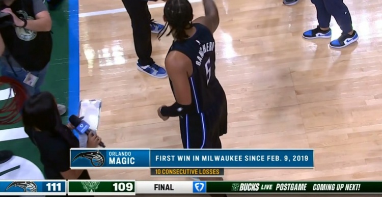 此役取勝之后,魔術結束了對雄鹿的客場10連敗,他們上一場客勝雄鹿是2019年2月9日。