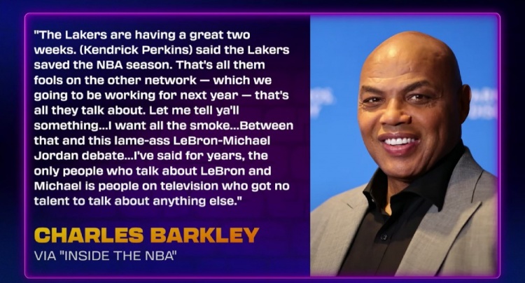 他說:“湖人隊在過去兩周的表現(xiàn)非常出色,而帕金斯說湖人隊拯救了NBA賽季。另一家媒體(ESPN)的那些蠢貨——我們明年就要為他們工作了,他們整天就聊這些。我跟你們說,我可不怕爭議。除了這個,還有勒布朗和邁克爾-喬丹誰更厲害這種無聊的爭論。我都說了好幾年了,只有那些在電視上沒別的話題可聊的人才會談?wù)摾詹祭屎瓦~克爾 ?!?/p>
