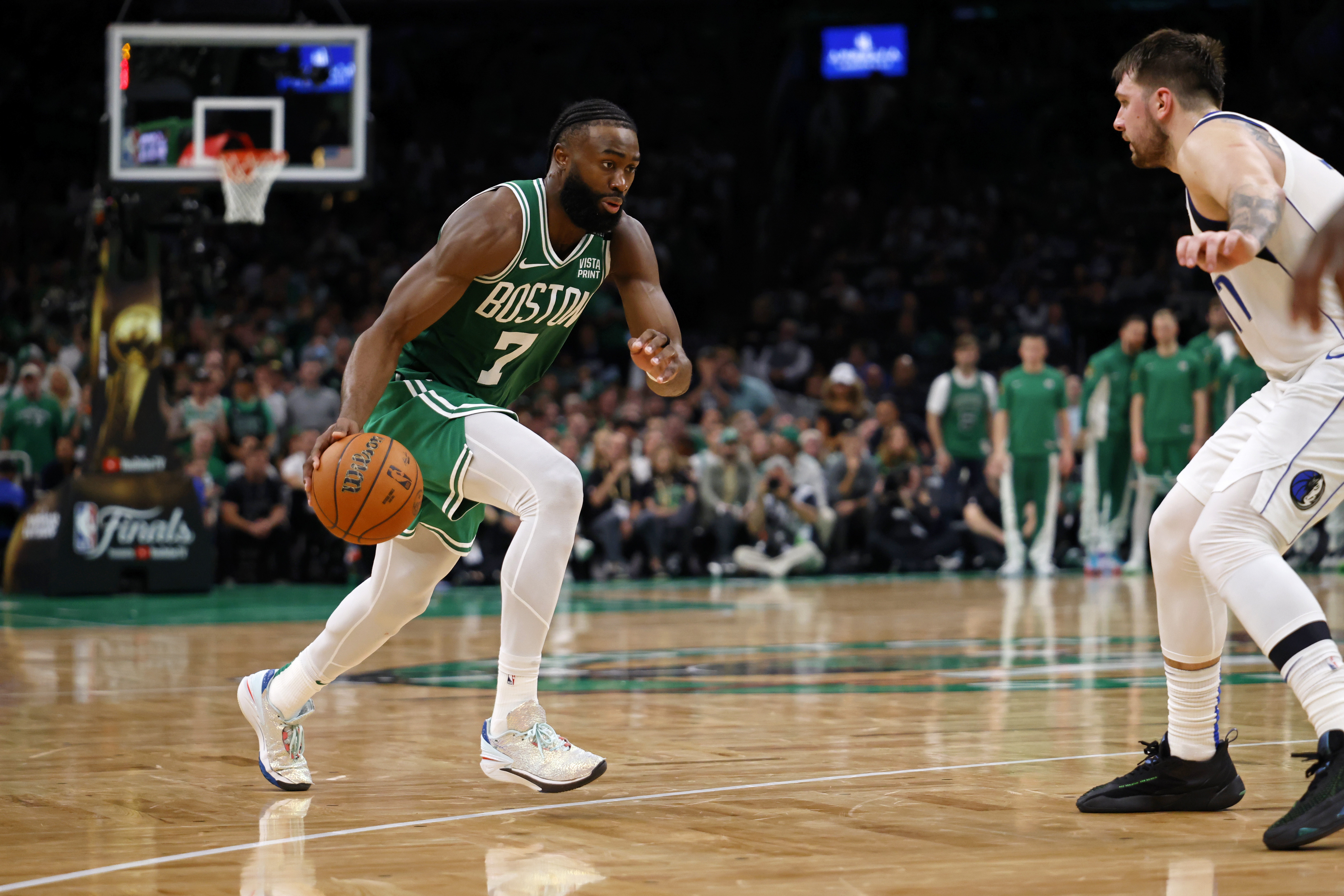 有一段時間,東契奇的表現(xiàn)仿佛重現(xiàn)了去年總決賽的場景(對凱爾特人隊而言或許并不遙遠(yuǎn))。凱爾特人隊早早對東契奇實施包夾,而布朗則在防守端成為核心——不斷搶斷發(fā)起快攻暴扣,并在進(jìn)攻端消耗東契奇的體力。