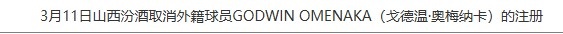3月11日訊 今天,CBA官方更新了外籍球員注冊信息,山西男籃取消了戈德溫-奧梅納卡的注冊。與此同時(shí),山西為凱西-普拉瑟完成了注冊,目前山西的四名外援分別為:普拉瑟、迪亞洛、法耶、古德溫。目前山西的戰(zhàn)績?yōu)?9勝9負(fù),高居聯(lián)賽第2位。 本文標(biāo)簽: 籃球 CBA 中國籃球 山西