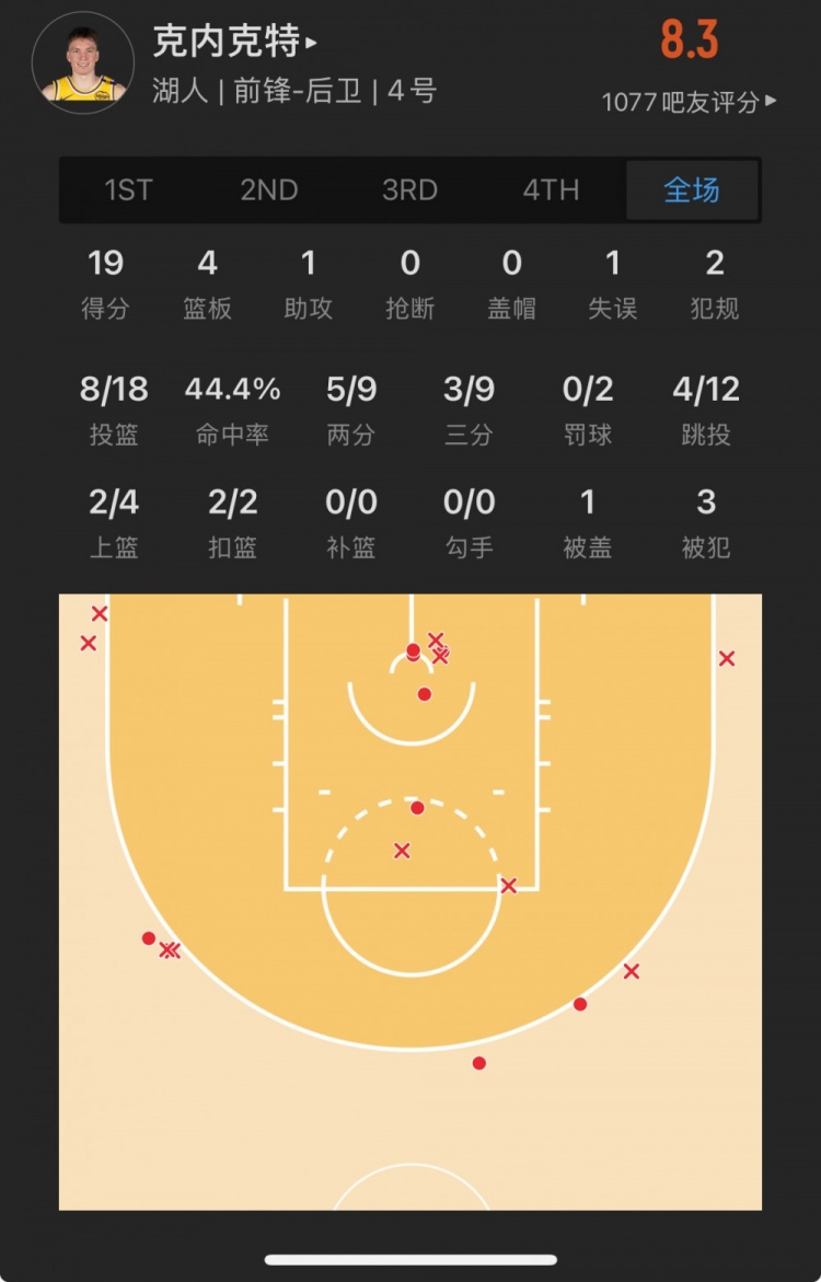 湖人17號(hào)秀 道爾頓-克內(nèi)克特 登場(chǎng)41.0分鐘