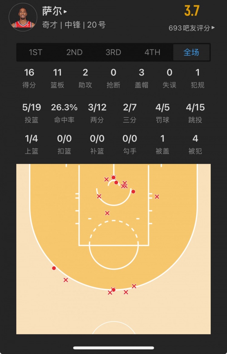 奇才榜眼秀 亞歷克斯-薩爾 登場(chǎng)30.4分鐘