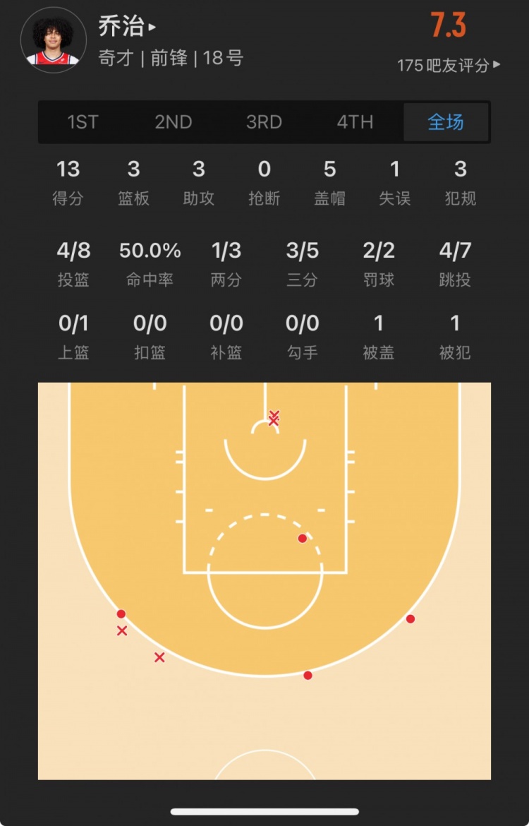 奇才24號(hào)秀 凱肖恩-喬治 登場(chǎng)27.5分鐘