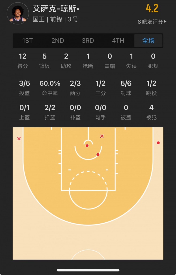 國王落選秀 艾薩克-瓊斯 登場(chǎng)18.9分鐘