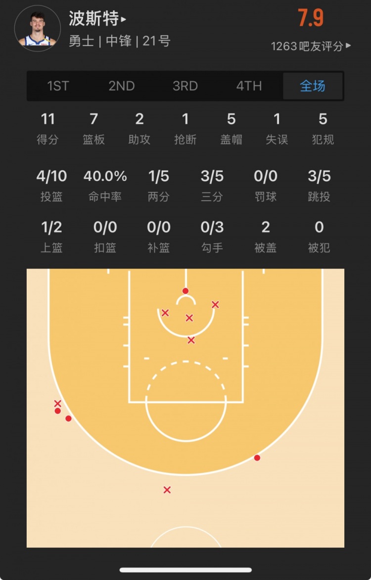 勇士52號(hào)秀 昆滕-波斯特 登場(chǎng)25.4分鐘