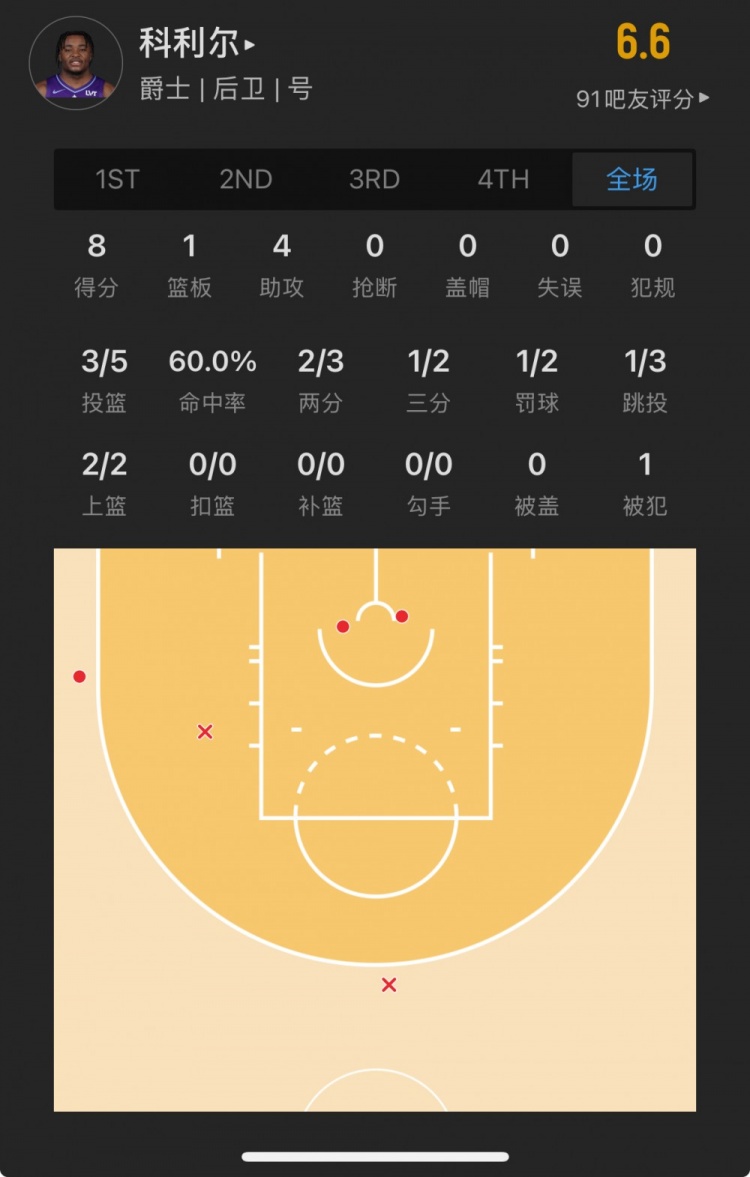 爵士29號(hào)秀 以賽亞-科利爾 登場(chǎng)28.4分鐘