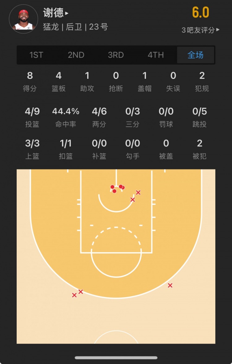 猛龍45號(hào)秀 賈馬爾-謝德 登場(chǎng)26.6分鐘