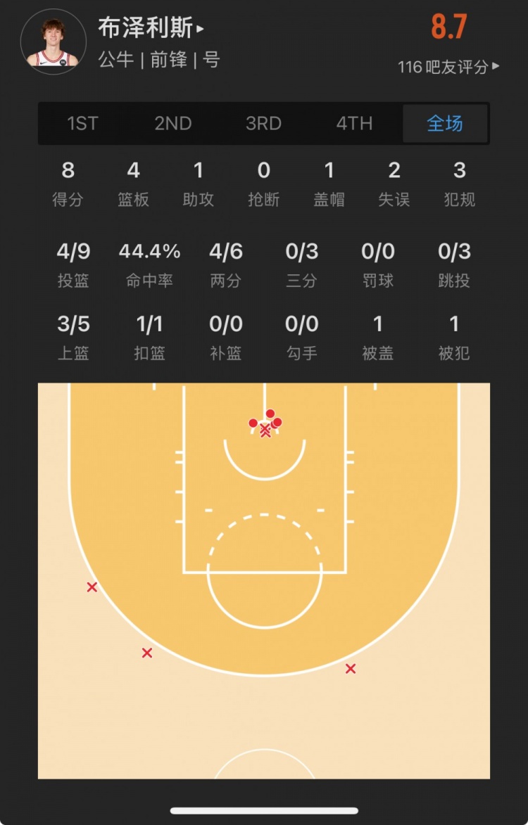 公牛11號(hào)秀 馬蒂斯-布澤利斯 登場(chǎng)24.2分鐘