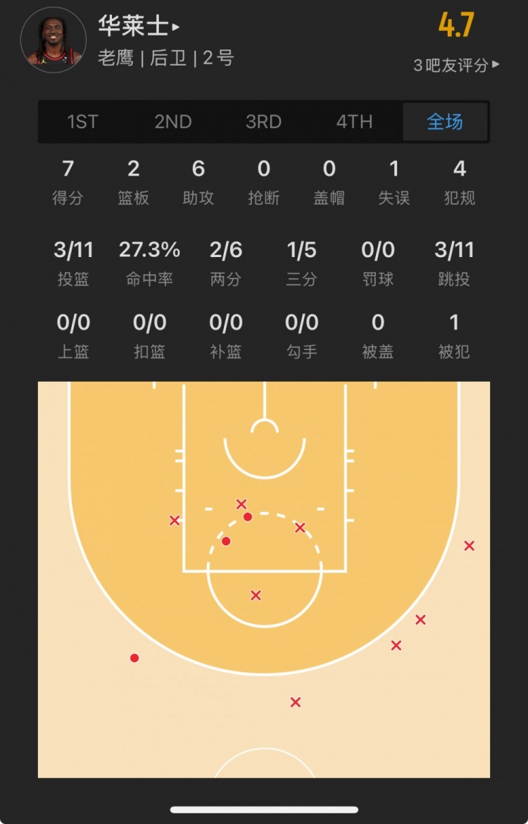 老鷹落選秀 基頓-華萊士 登場(chǎng)30.6分鐘