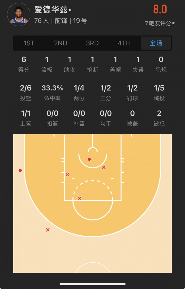 76人41號(hào)秀 阿德姆-博納 登場(chǎng)22.6分鐘