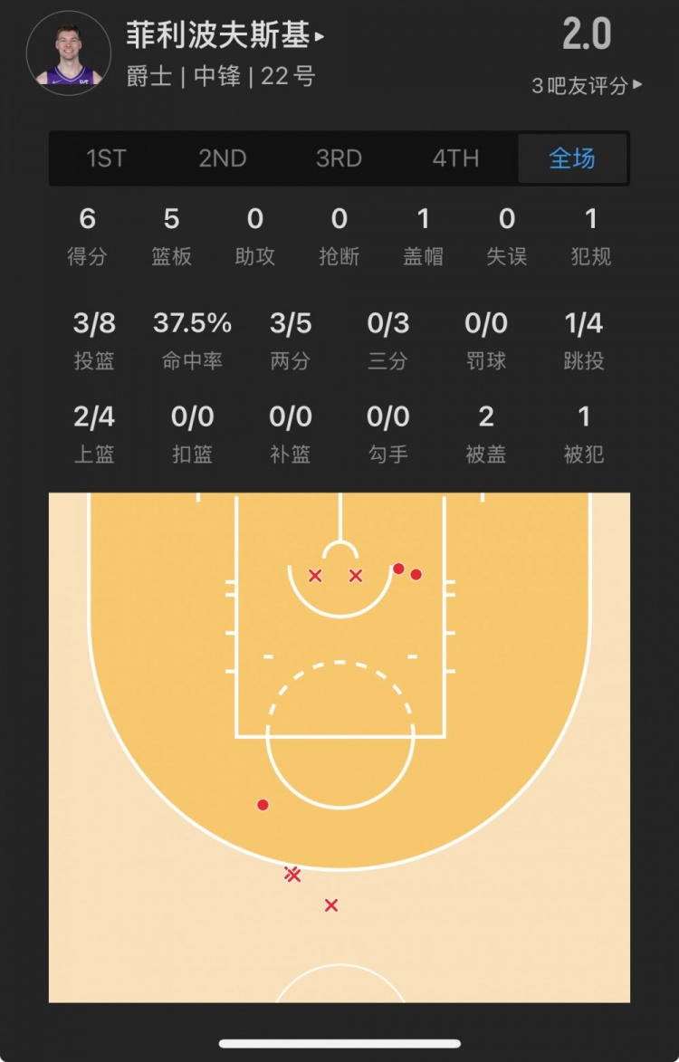 爵士32號(hào)秀 凱爾-菲利波夫斯基 登場(chǎng)16.4分鐘