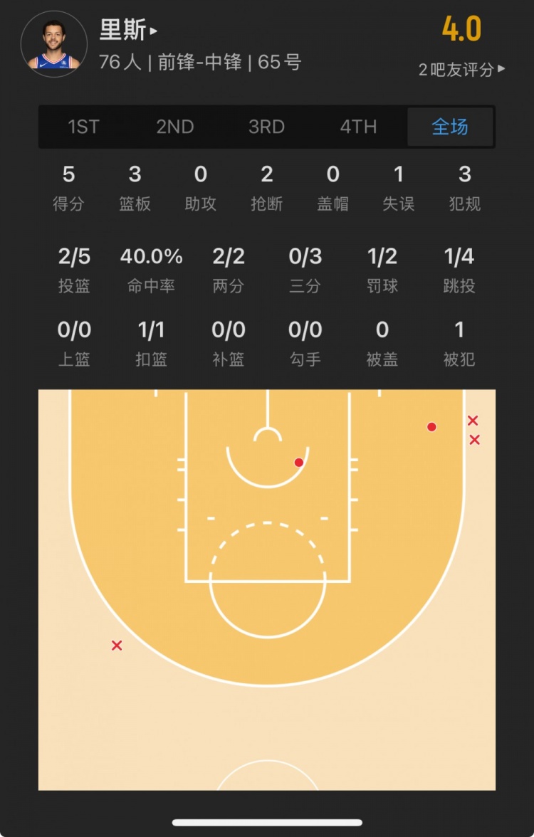 76人落選秀 亞歷克斯-里斯 登場(chǎng)17.7分鐘
