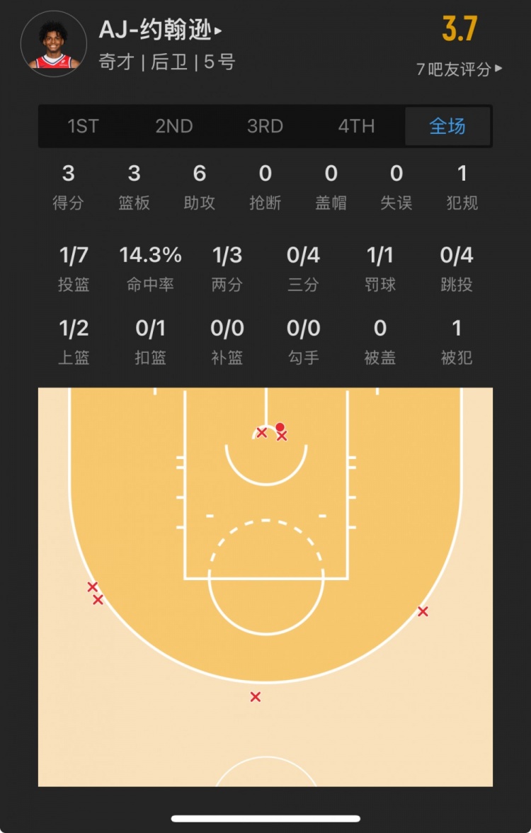奇才23號(hào)秀 AJ-約翰遜 登場(chǎng)23.3分鐘