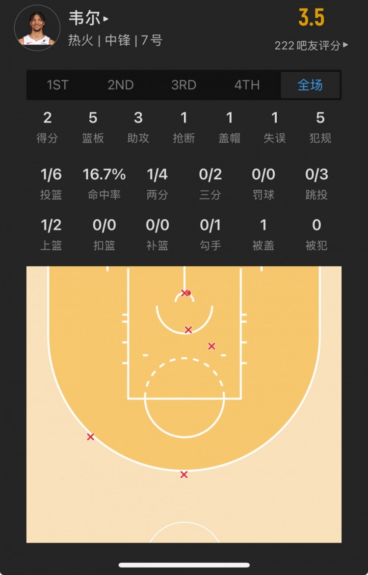 熱火15號(hào)秀 克雷爾-韋爾 登場(chǎng)23.0分鐘