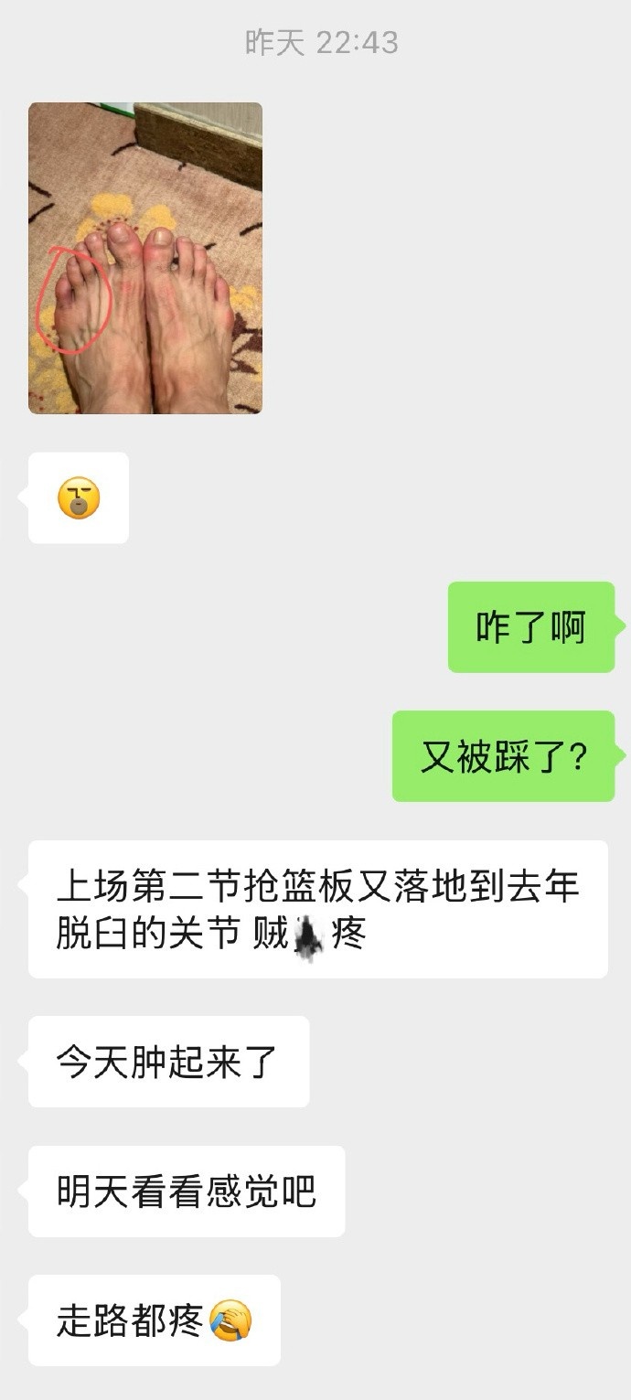 李弘權(quán)上一場第二節(jié)搶籃板的時(shí)候又傷到了去年脫臼的腳趾關(guān)節(jié),賽前吃了兩粒止疼藥上去打的。