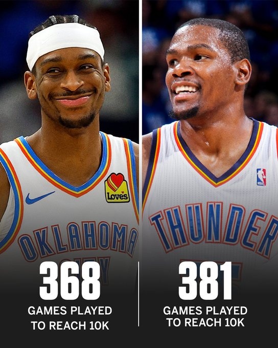根據(jù)數(shù)據(jù)統(tǒng)計(jì),亞歷山大歷時(shí)368場(chǎng)比賽解鎖雷霆生涯1萬(wàn)分,他超越杜蘭特(381場(chǎng)),成為了隊(duì)史上(雷霆加超音速)解鎖1萬(wàn)分最快的球員。