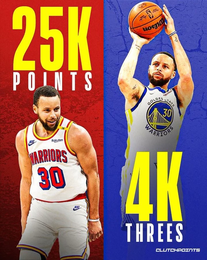 - 好事連連!庫里五天內迎兩大里程碑:25000分+4000記三分球