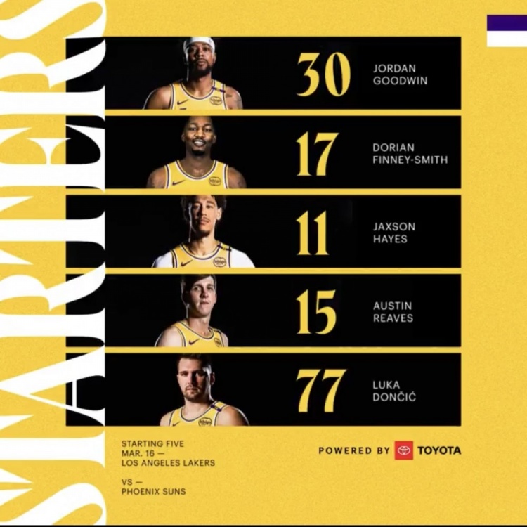 3月17日訊 今日,湖人官方賽前公布了本場比賽的首發(fā)陣容。東契奇、里夫斯、古德溫、芬尼-史密斯、海斯將首發(fā)出場。湖人將于3:30主場迎戰(zhàn)太陽。 本文標(biāo)簽: 籃球 NBA 湖人