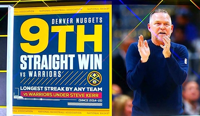 本場(chǎng)過(guò)后,勇士面對(duì)掘金已經(jīng)慘遭9連敗。