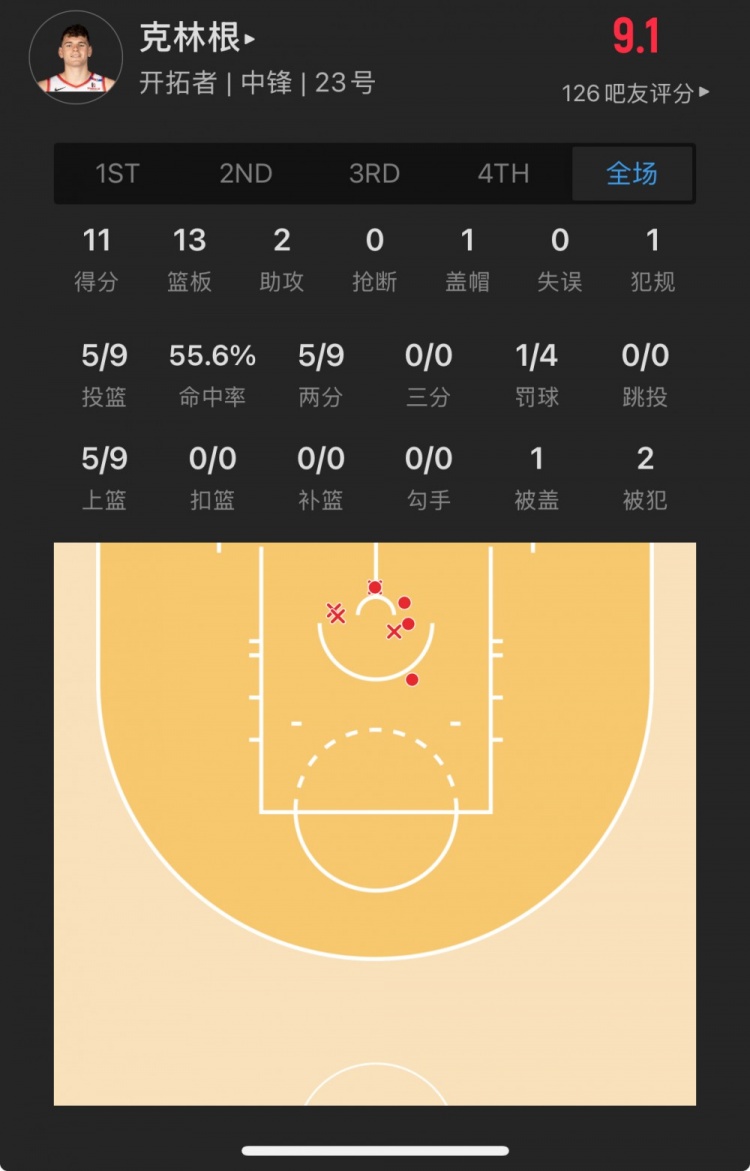 76人落選秀 亞歷克斯-里斯 登場(chǎng)13.2分鐘