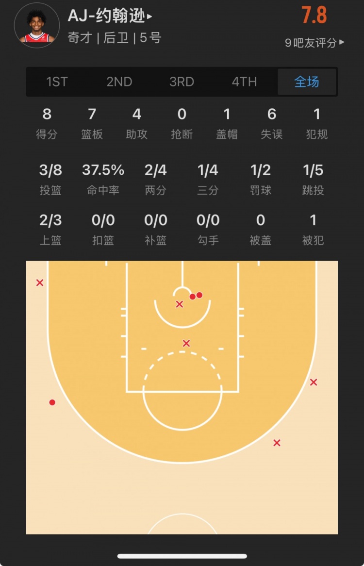 奇才23號(hào)秀 AJ-約翰遜 登場(chǎng)34.8分鐘