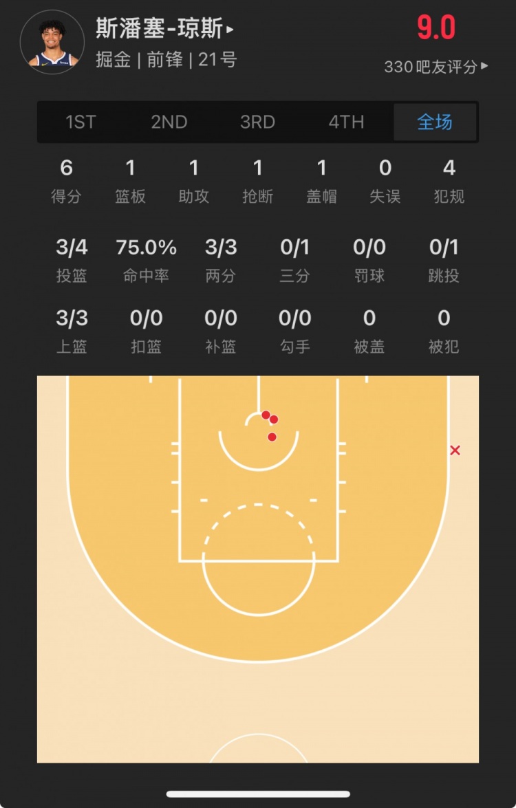 掘金落選秀 斯潘塞-瓊斯 登場(chǎng)18.9分鐘