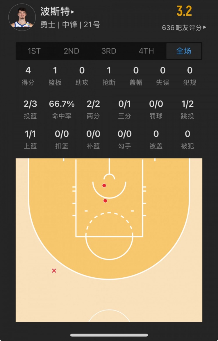 勇士52號(hào)秀 昆滕-波斯特 登場(chǎng)8.4分鐘