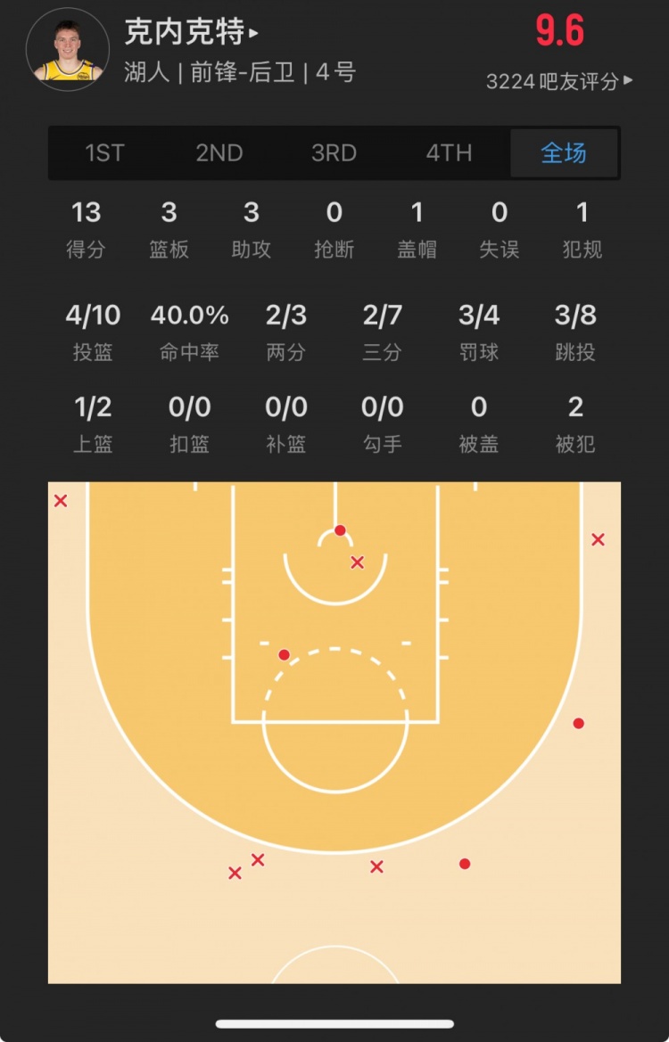 湖人17號(hào)秀 道爾頓-克內(nèi)克特 登場(chǎng)20.4分鐘