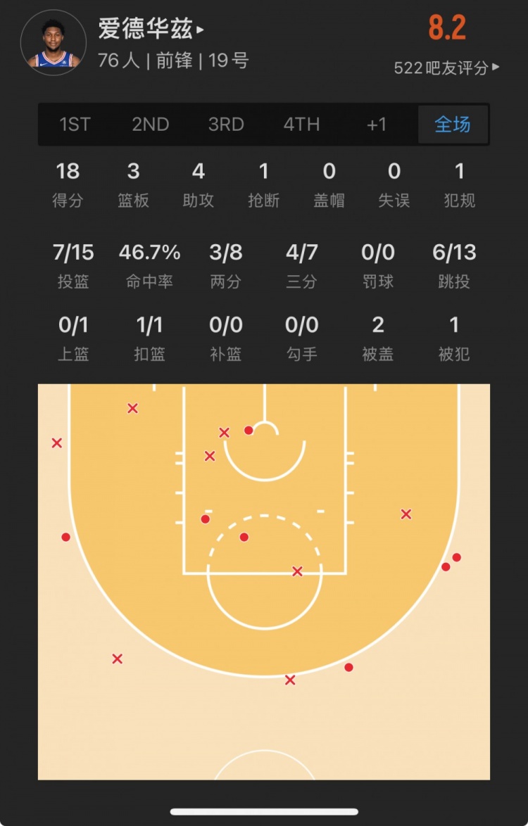 76人落選秀 賈斯汀-愛(ài)德華茲 登場(chǎng)39.6分鐘