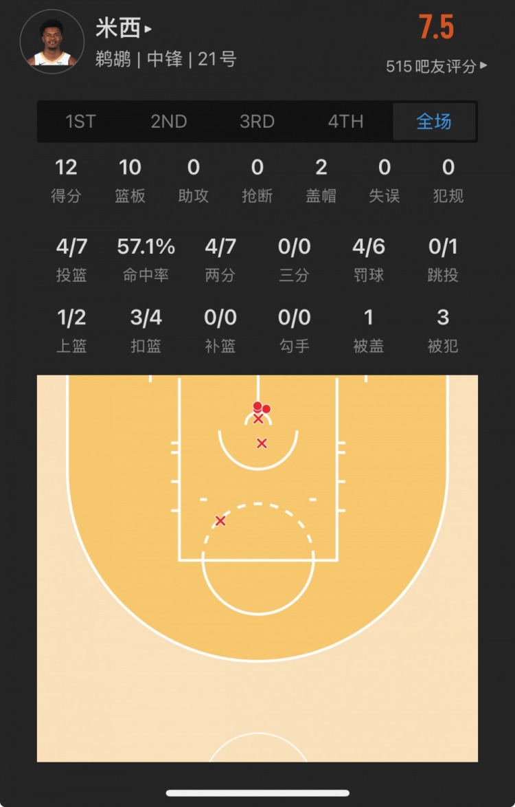 鵜鶘21號(hào)秀 伊夫-米西 登場(chǎng)21.6分鐘