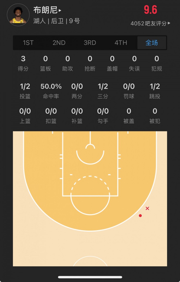 湖人55號(hào)秀 布朗尼-詹姆斯 登場(chǎng)2.5分鐘