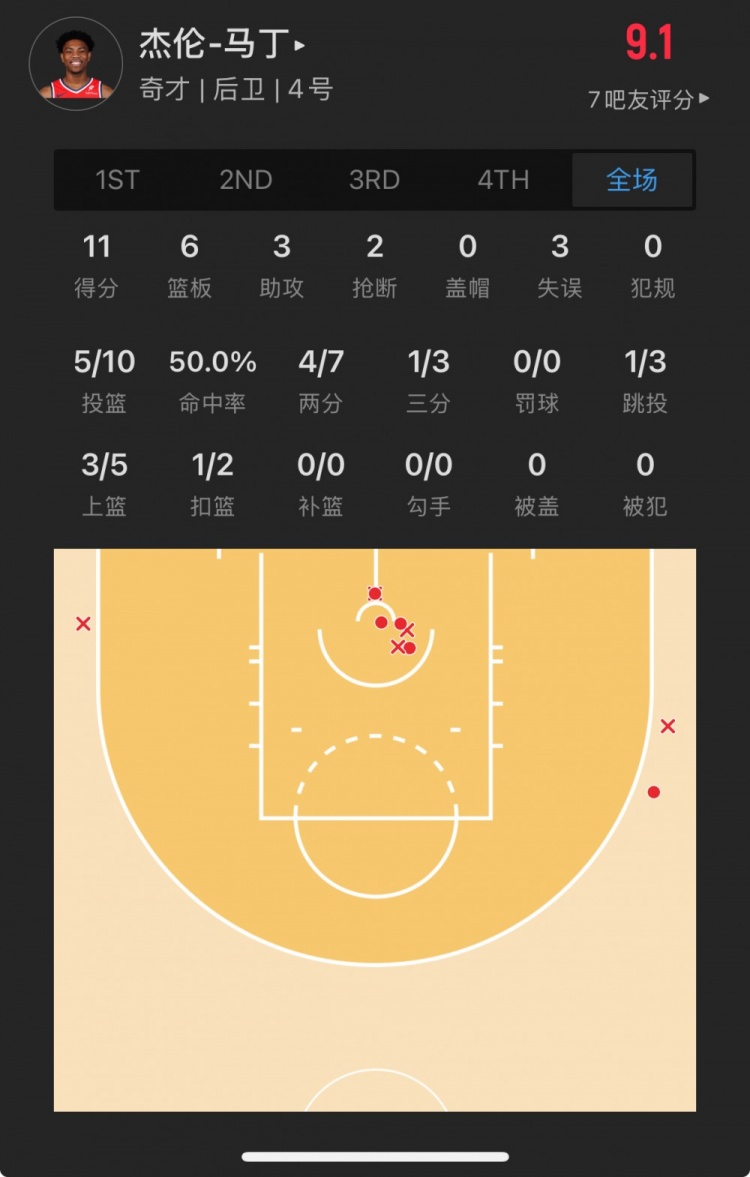 奇才落選秀 杰倫-馬丁 登場(chǎng)27.9分鐘