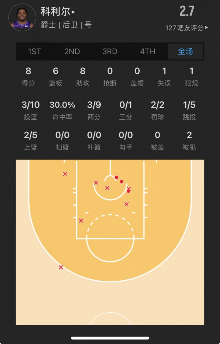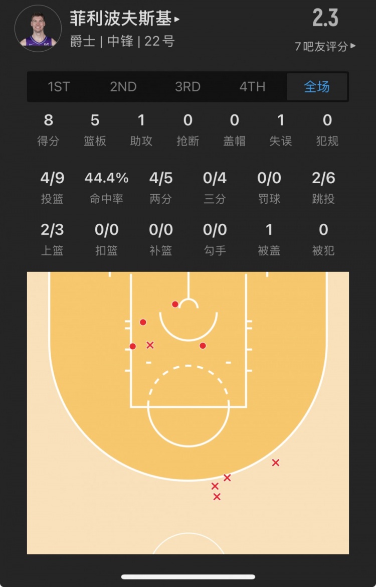 爵士32號(hào)秀 凱爾-菲利波夫斯基 登場(chǎng)23.8分鐘