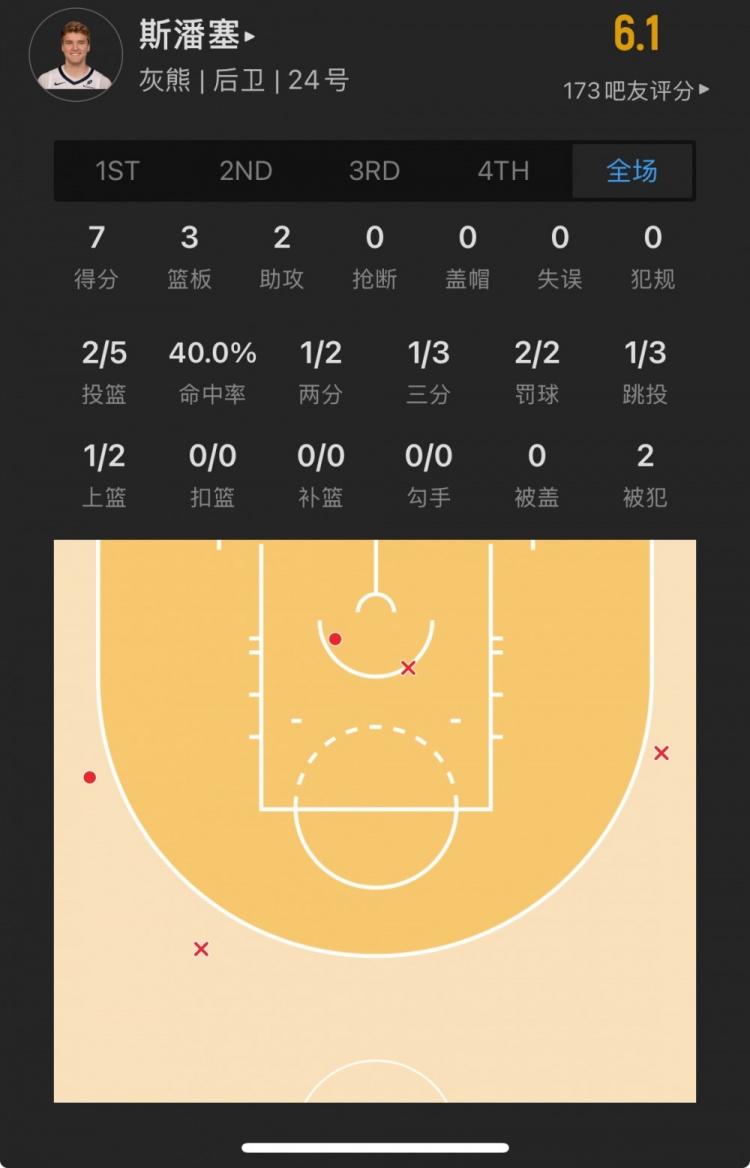 灰熊53號(hào)秀 卡梅隆-斯潘塞 登場(chǎng)15.3分鐘