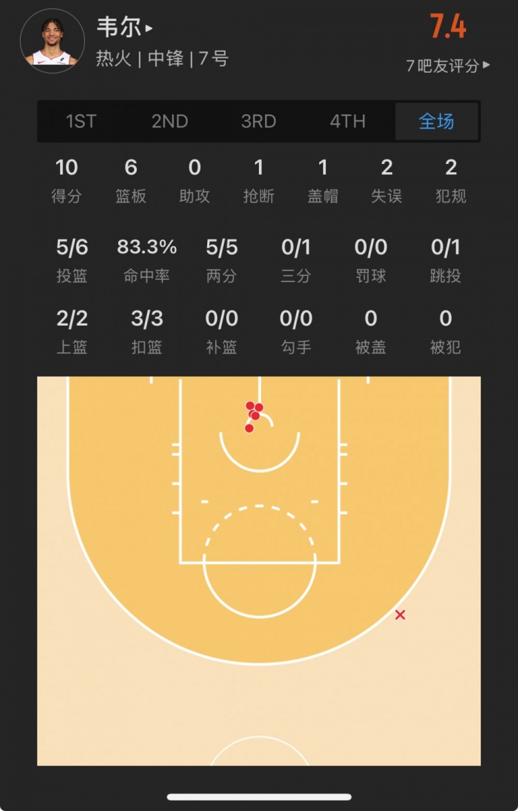 熱火15號(hào)秀 克雷爾-韋爾 登場(chǎng)19.3分鐘