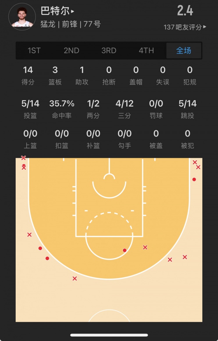 猛龍落選秀 賈米森-巴特爾 登場(chǎng)29.6分鐘